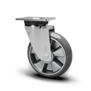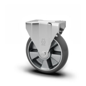 Rad mit Lauffläche aus gegossenem, antistatischem AVOANTISTATIC-Polyurethan, Härte 91 Shore A, mit Aluminiumkern. Nabe mit abgedichteten Kugellagern, montiert mit zentralem Distanzstück. Die Räder können mit allen Lenkrollen und Bockrollen der Serien Medium, Heavy und Extra-Heavy Duty sowie auch mit Doppelrollen-Ausführungen kombiniert werden.