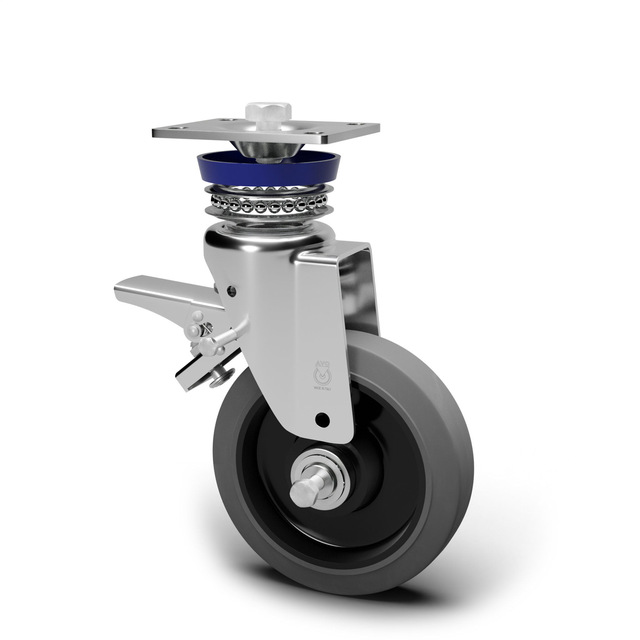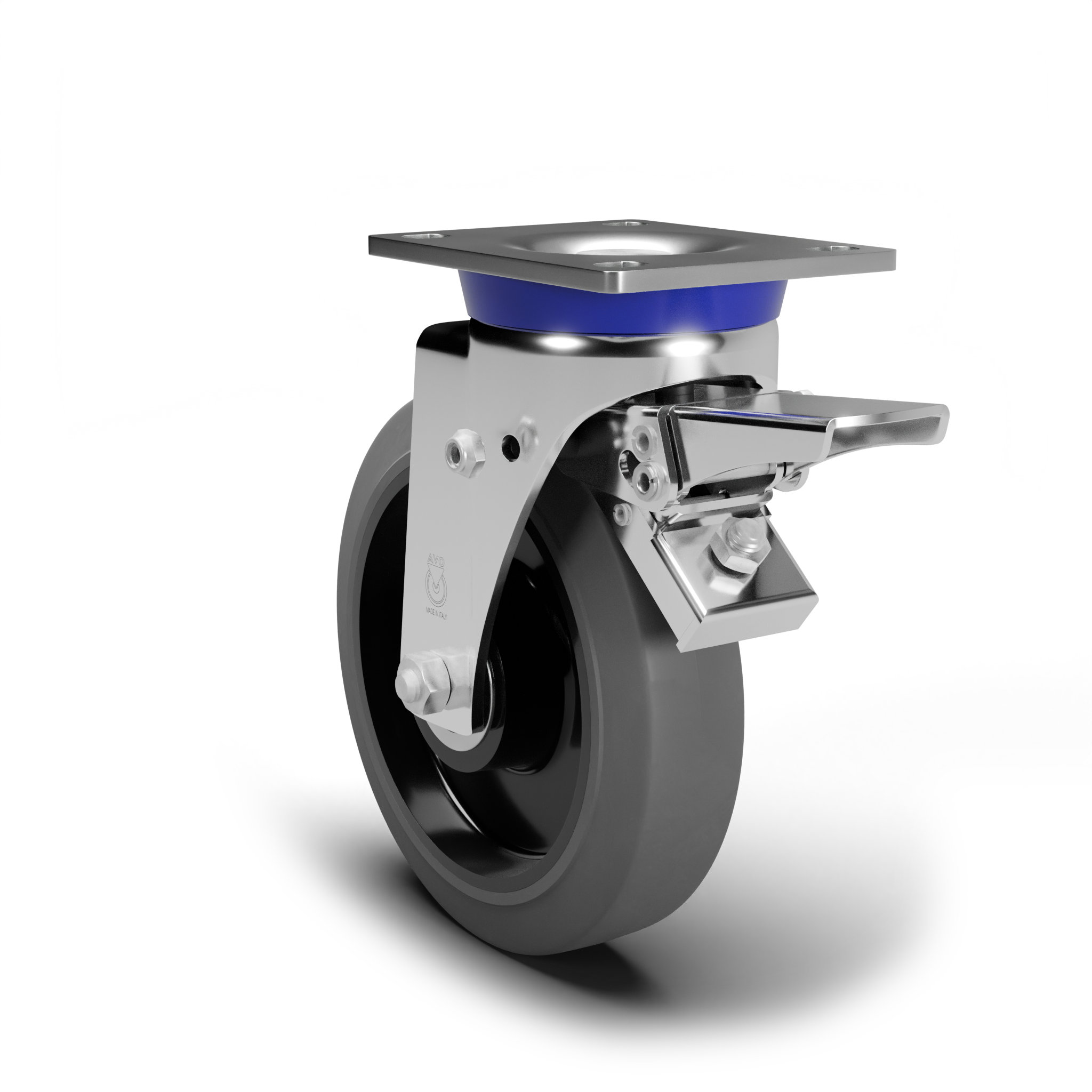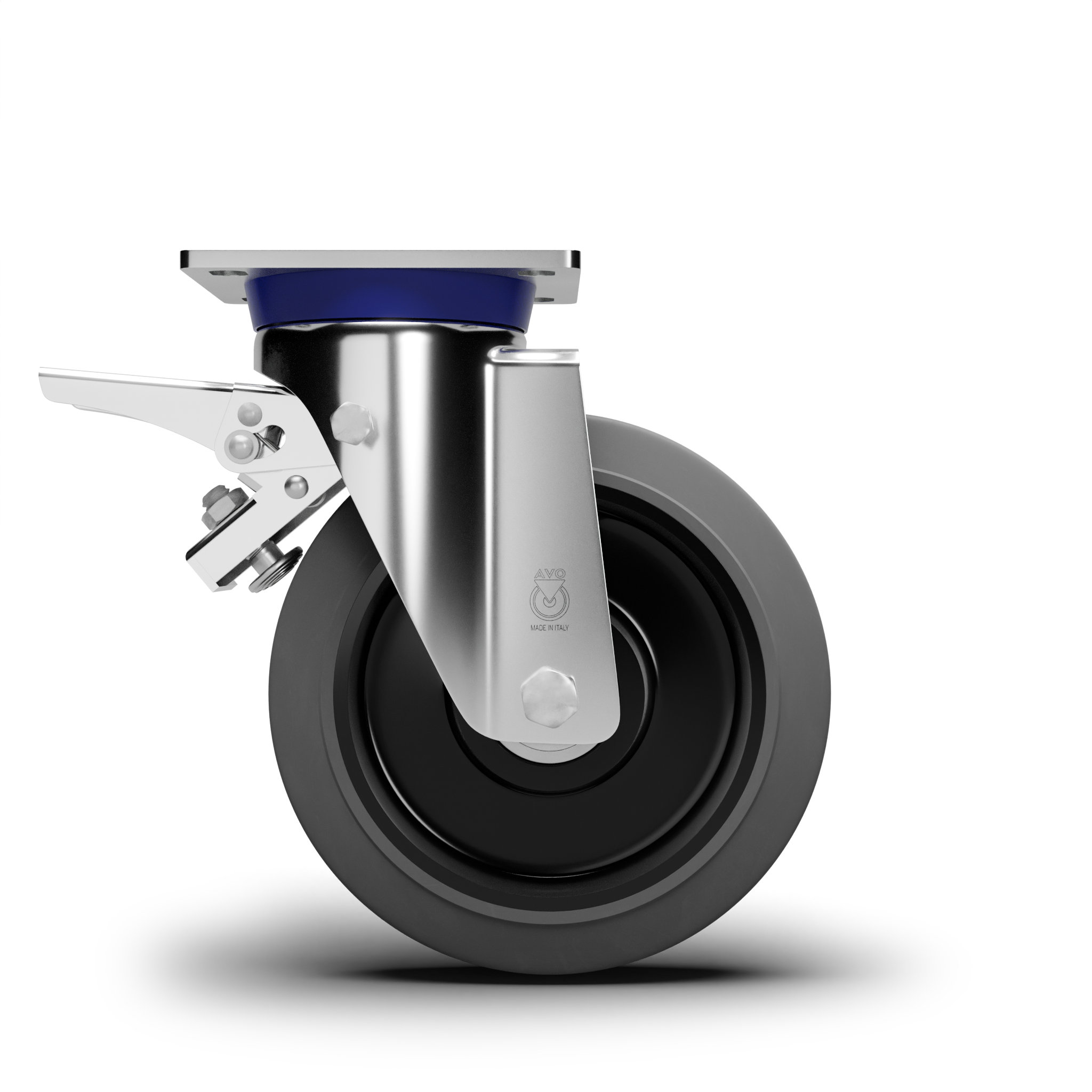 AVO – Wheel with non-marking rubber tyre and aisi 304 stainless steel castor for industry, diameter 125mm ean 25123
