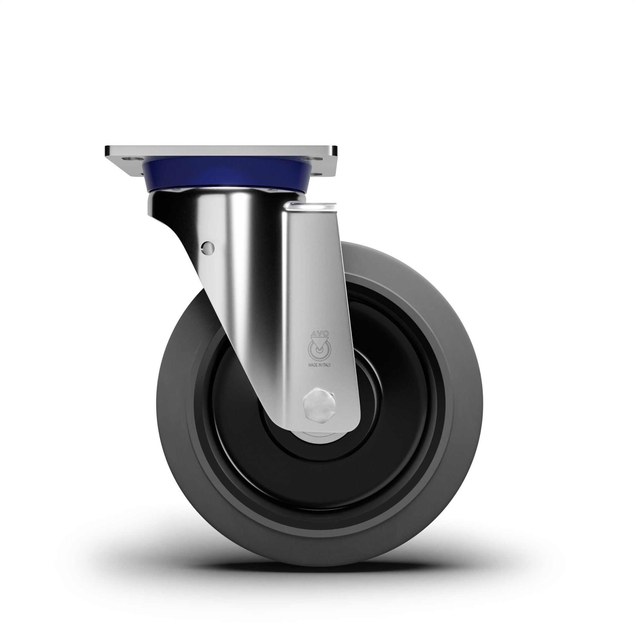 AVO – Wheel with non-marking rubber tyre and aisi 304 stainless steel castor for industry, diameter 80mm ean 20673
