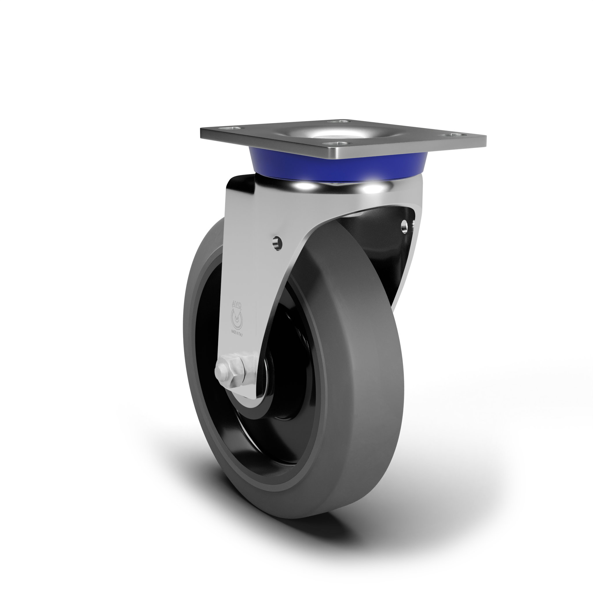 AVO – Wheel with non-marking rubber tyre and aisi 304 stainless steel castor for industry, diameter 125mm ean 20998