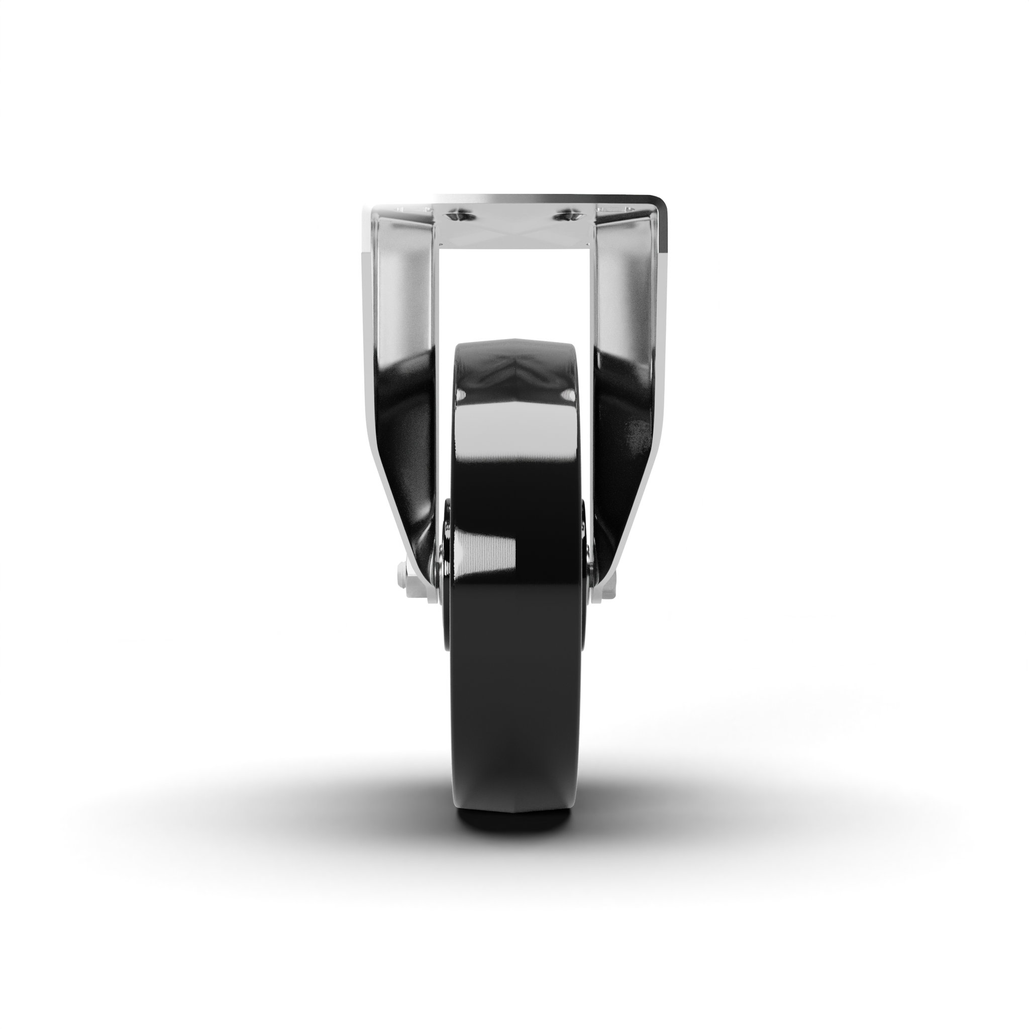 Monolithic Polyamide 6 wheel. Hub on plain bore, roller bearings or shielded ball bearings assembled whit central spacer.