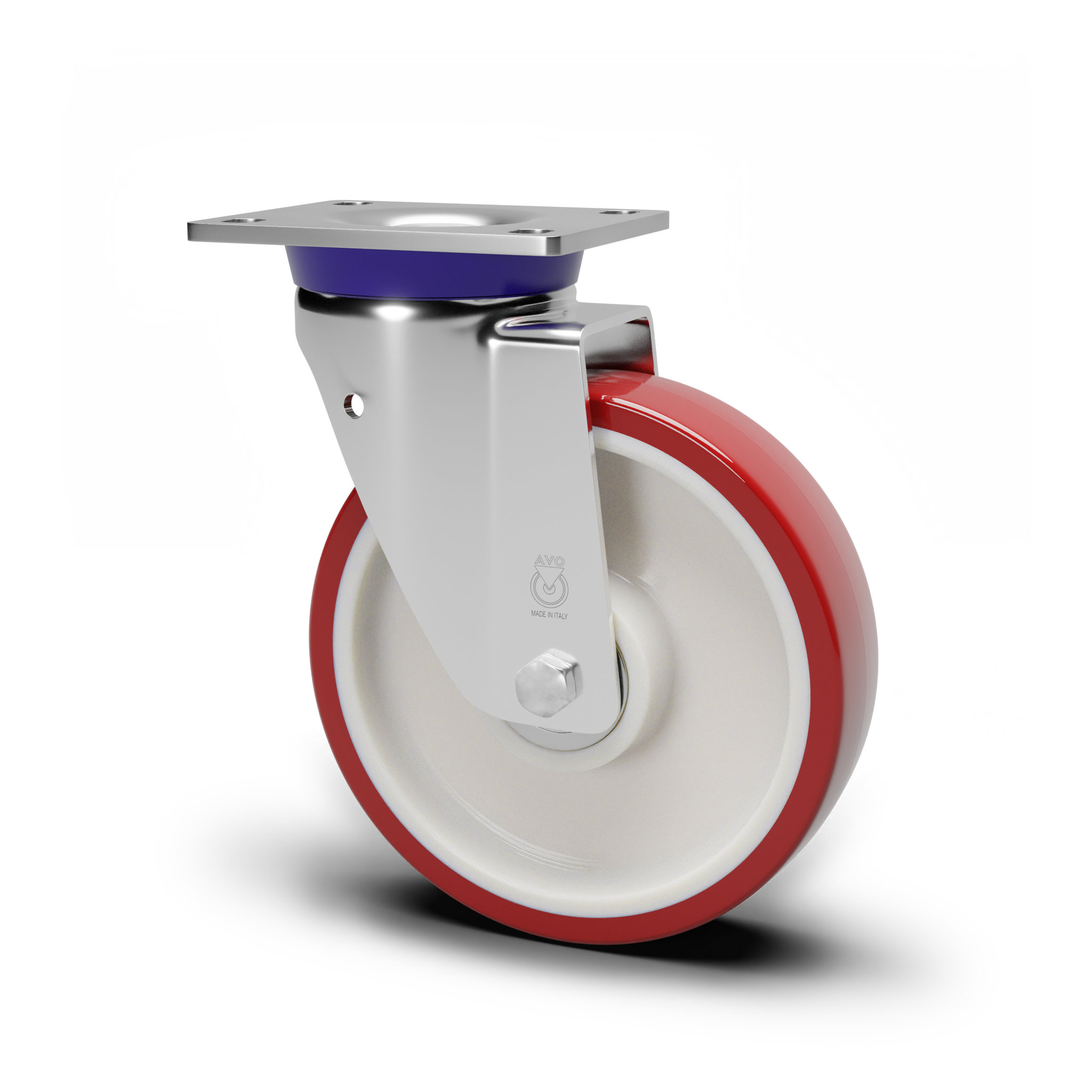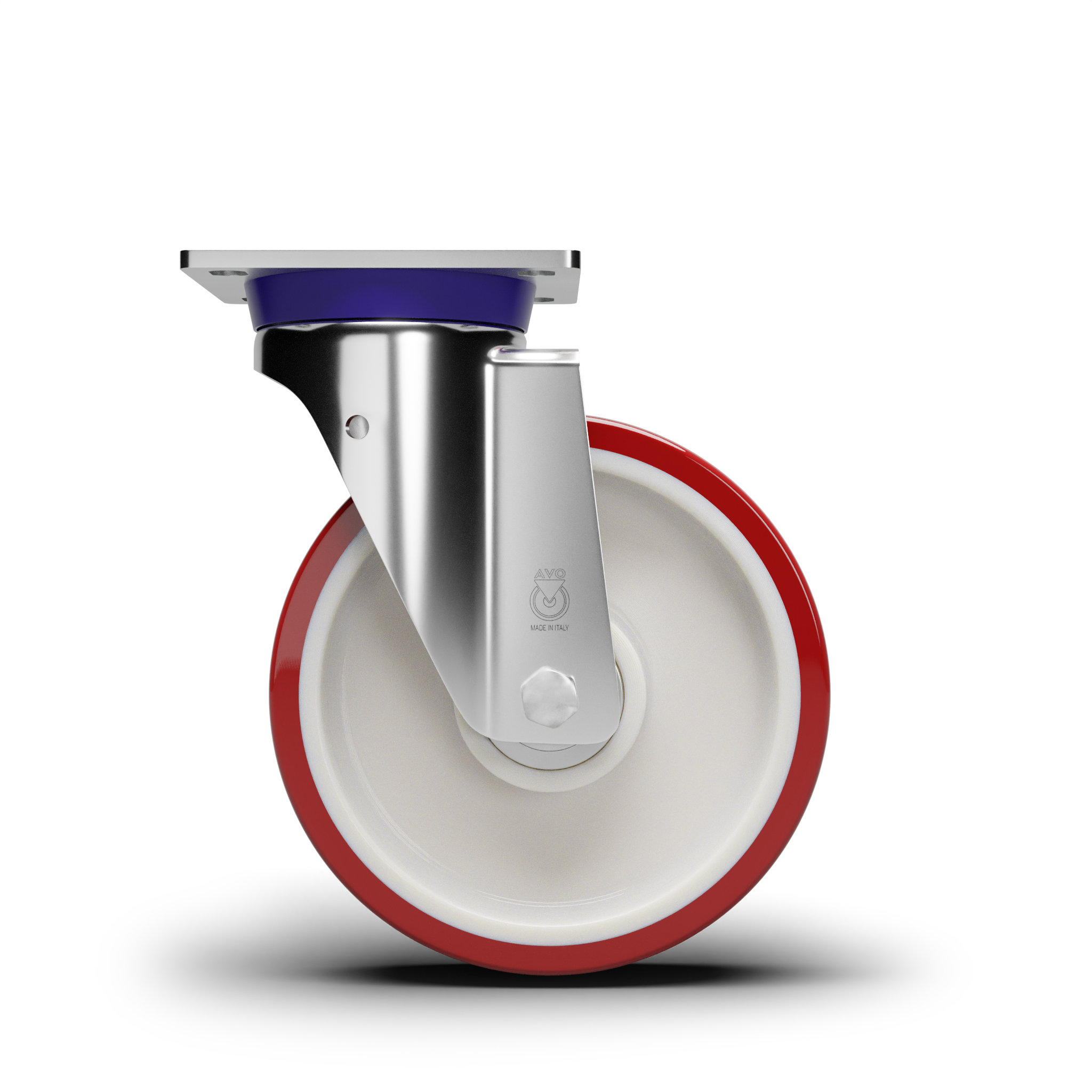 AVO – Wheel with thermoplastic polyurethane and aisi 304 stainless steel castor for industry, diameter 100mm ean 11346