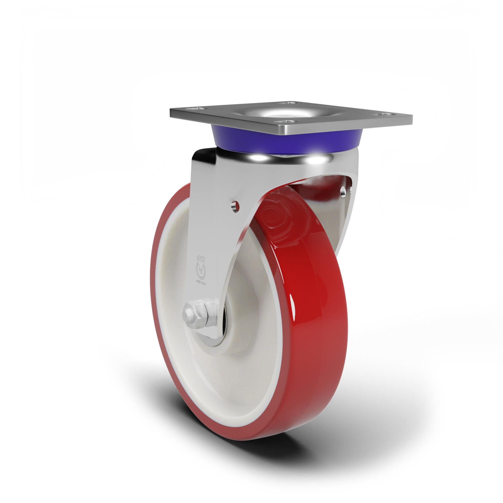 AVO – Wheel with thermoplastic polyurethane and aisi 304 stainless steel castor for industry, diameter 150mm ean 28741