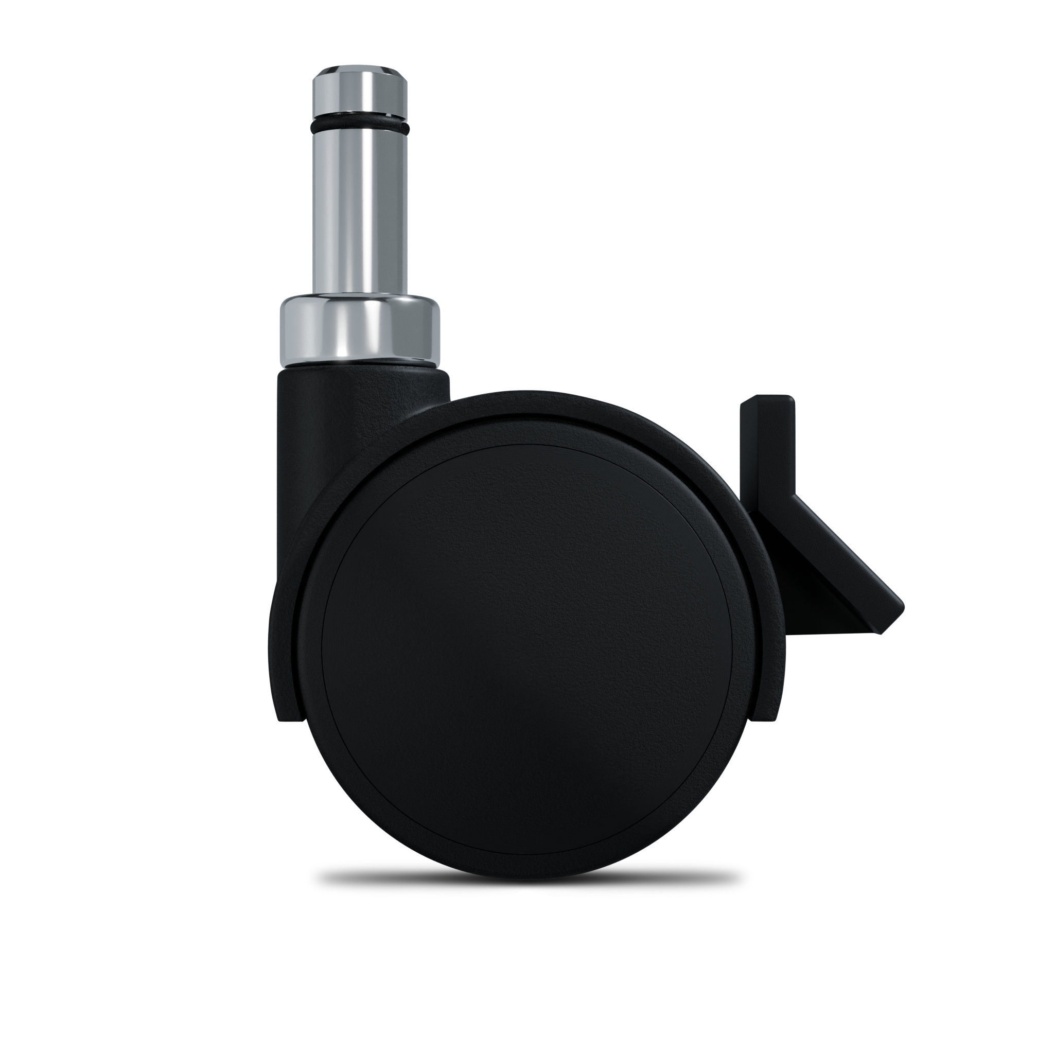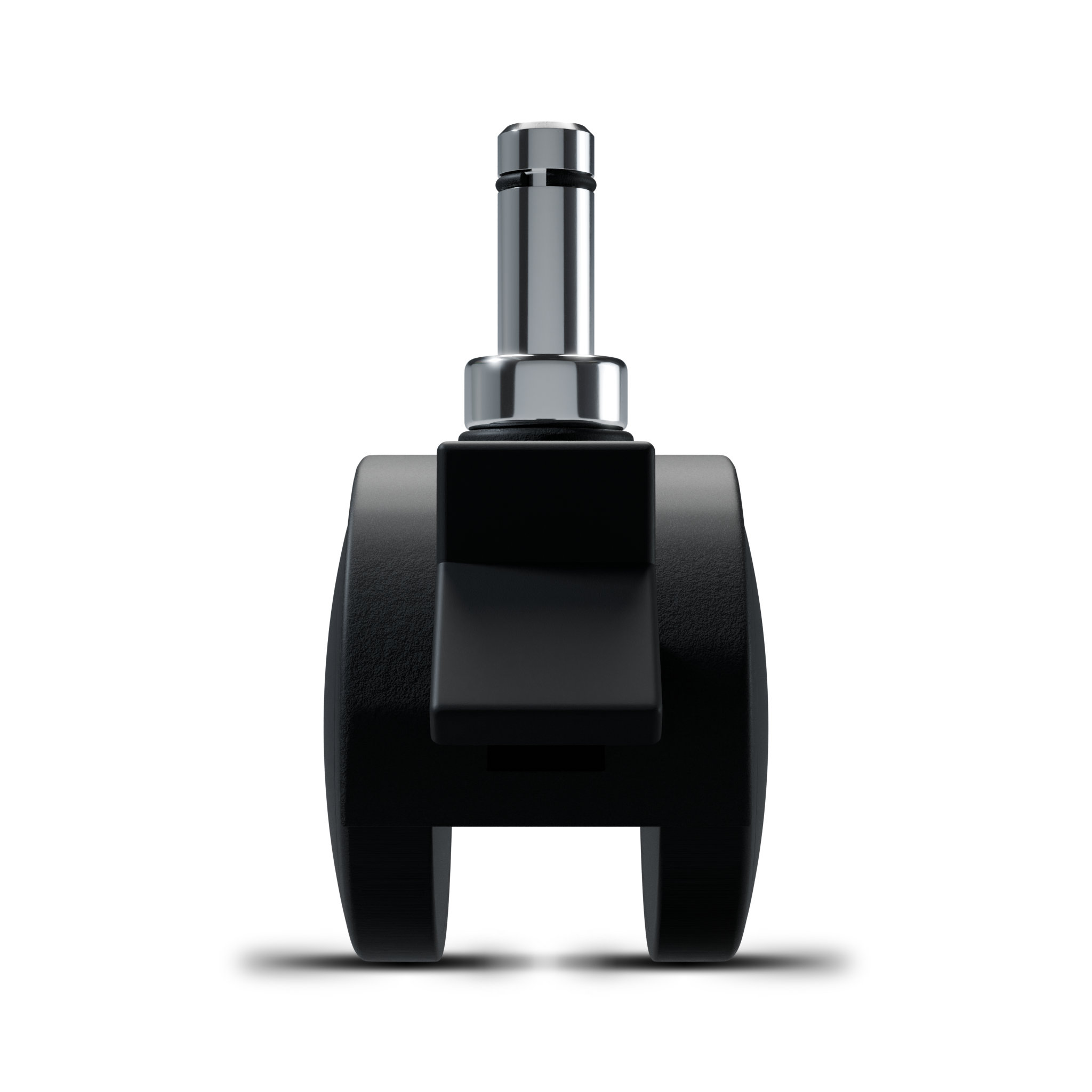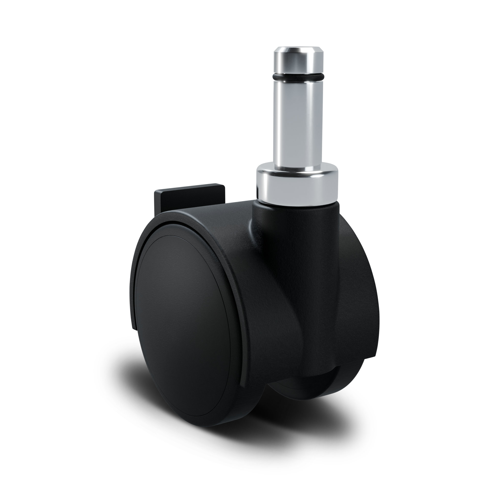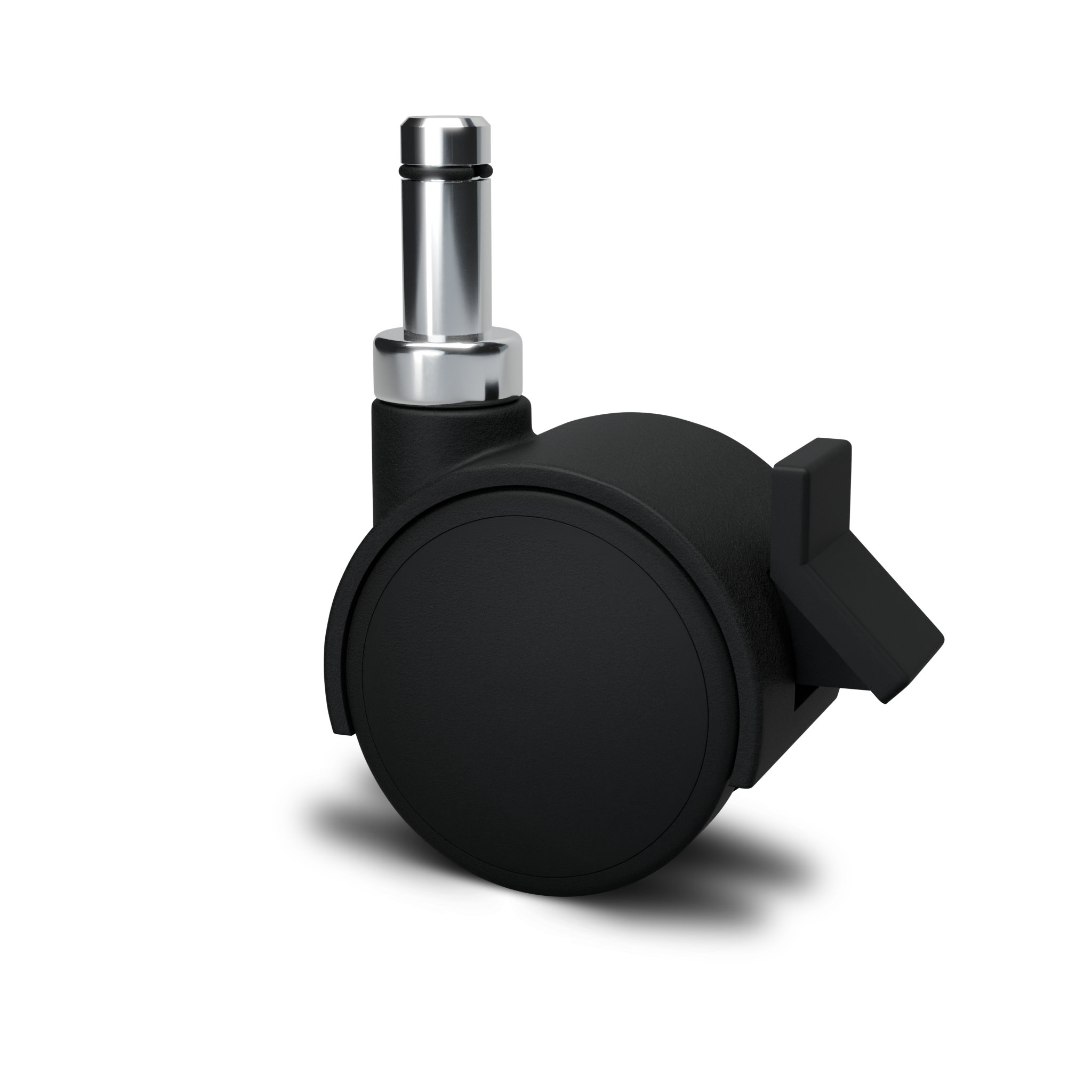 Double wheel and casing castor in black polyamide 6. Recommended use for office furniture, furnishing armchairs, display cabinets, etc.