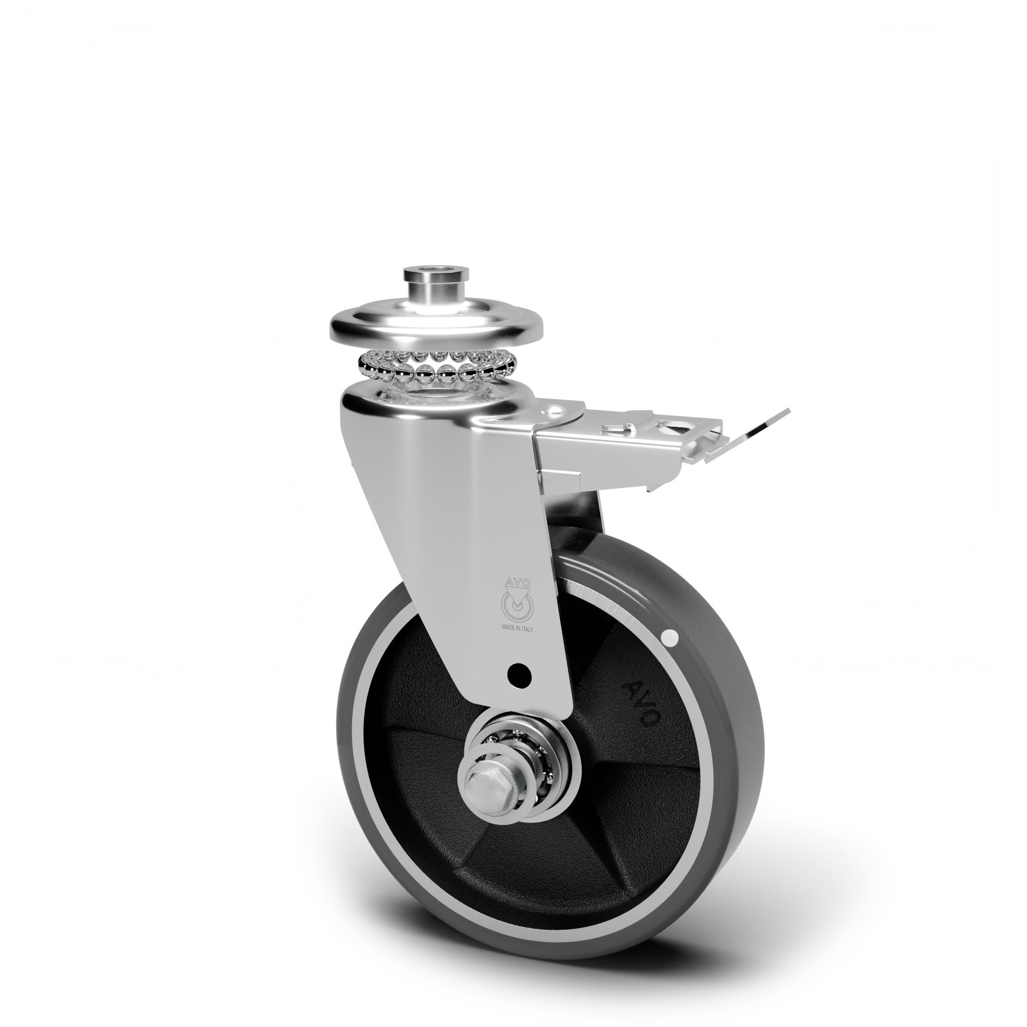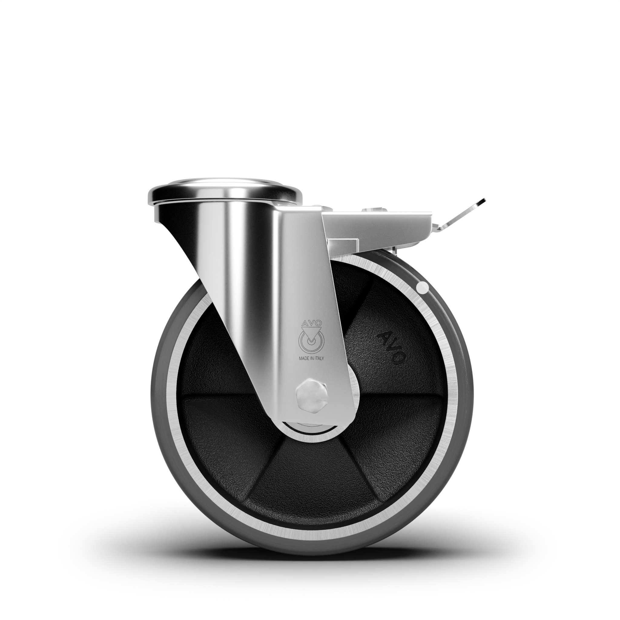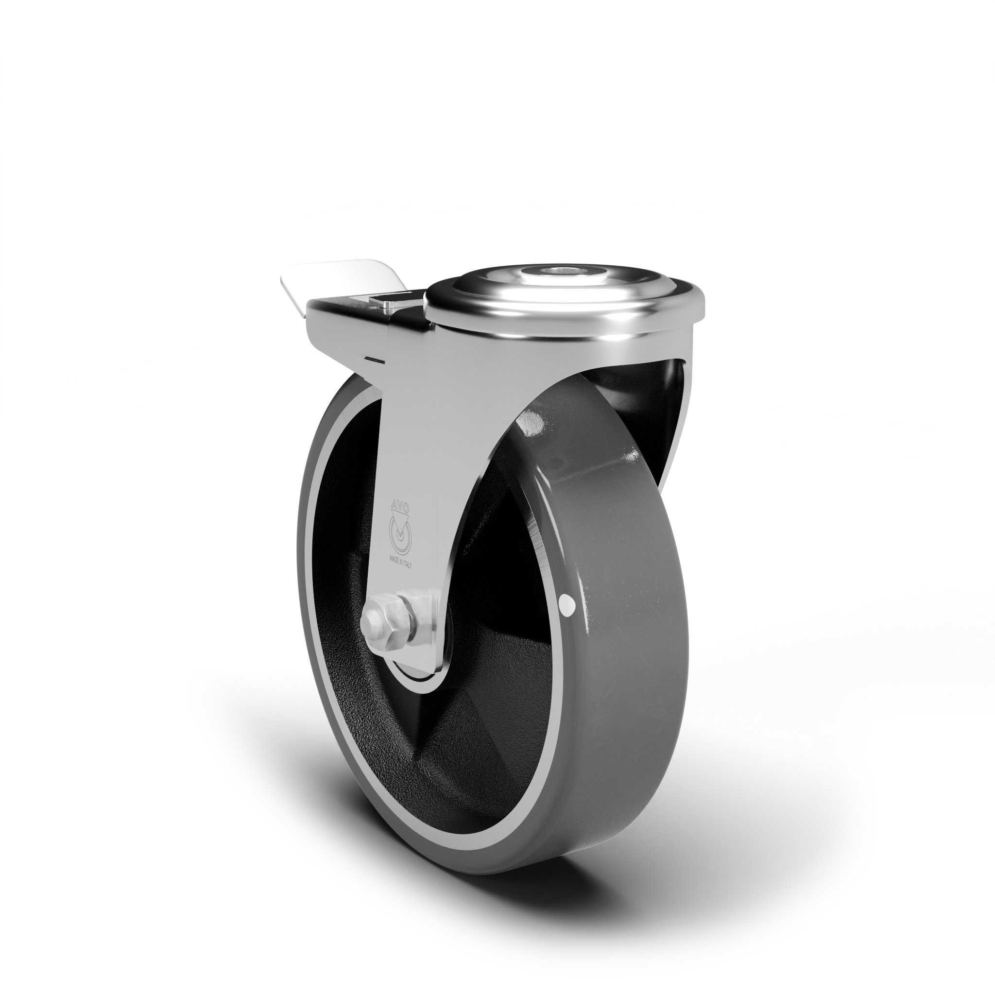 AVO – Rueda de poliuretano avoantistatic con soporte de acero para industria, diámetro 200mm ean 28119