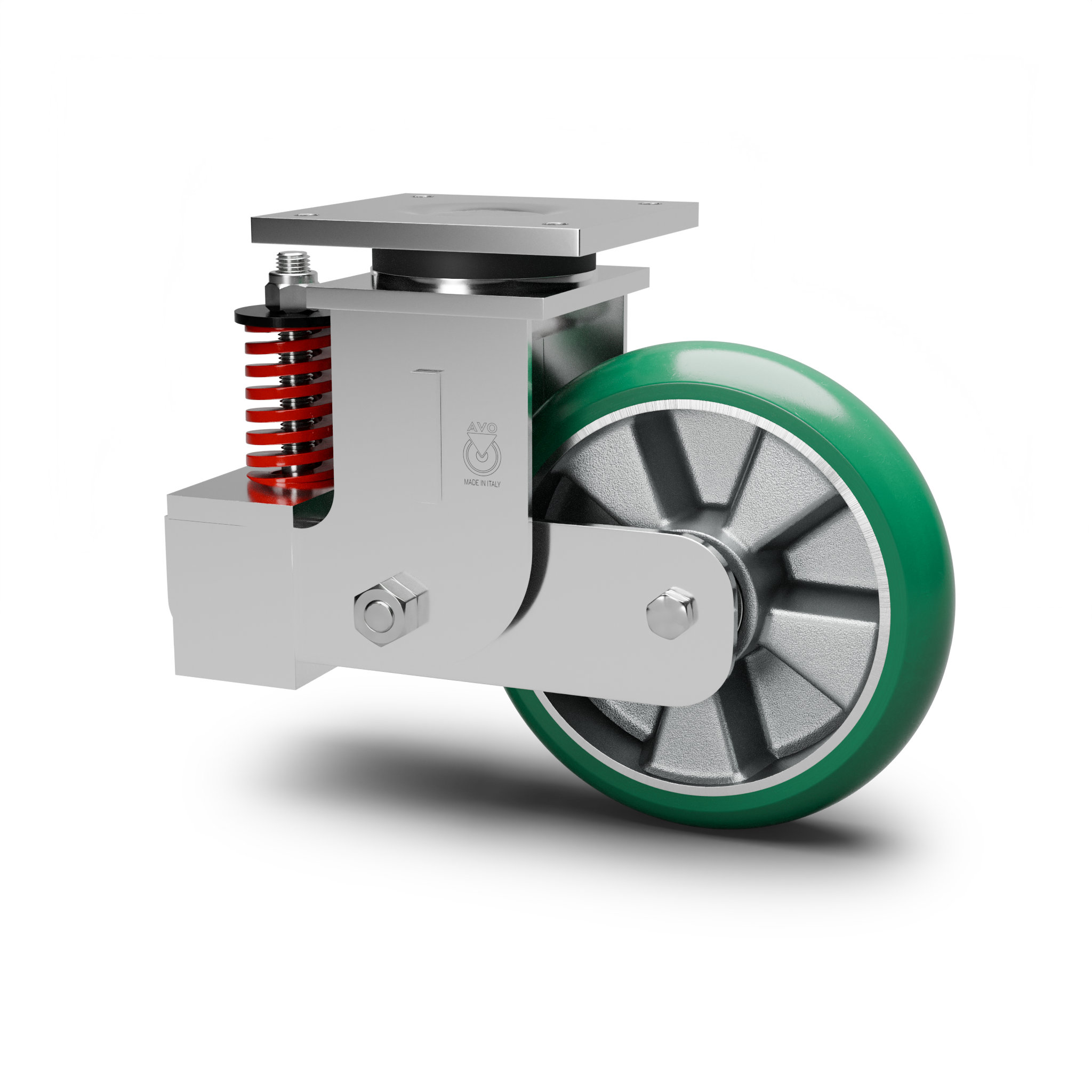 La gamma AVO include diverse configurazioni di supporti ammortizzati, disponibili con molle in acciaio e Ruote in Poliuretano, per adattarsi alle più svariate esigenze applicative. Le molle in acciaio offrono una lunga durata e mantengono caratteristiche costanti nel tempo, rendendole ideali per applicazioni che richiedono affidabilità strutturale.