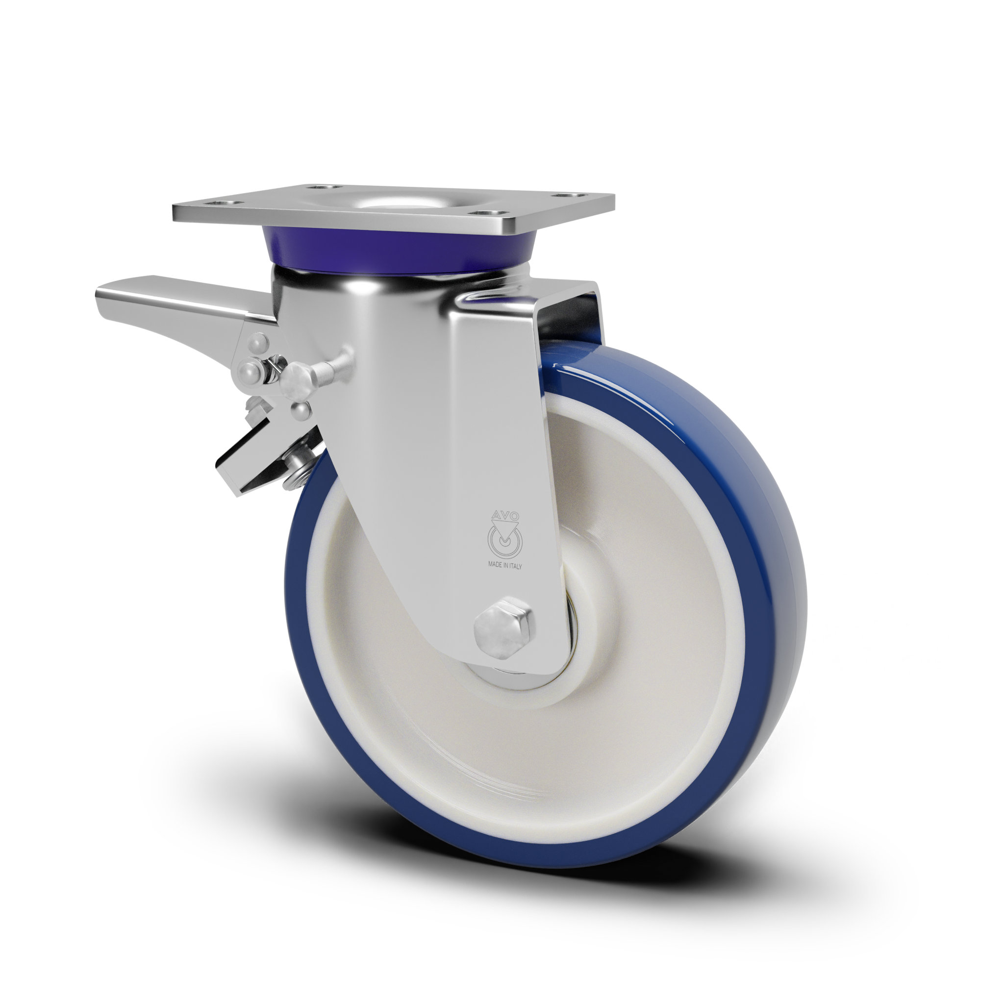 AVO – Ruota in poliuretano termoplastico con supporto in inox aisi 304 per industria, diametro 160mm ean 28715