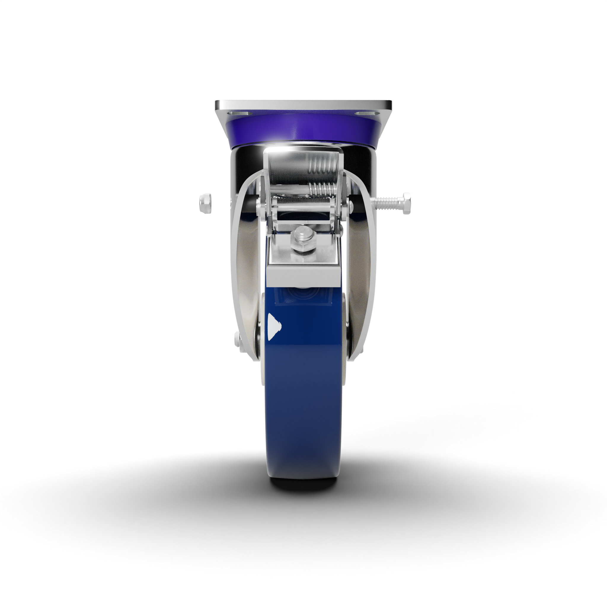 In acciaio INOX AISI 304 rotante su doppia corona di sfere INOX AISI 420, con piastra e freno posteriore. Anello parapolvere sul giro di sfere.