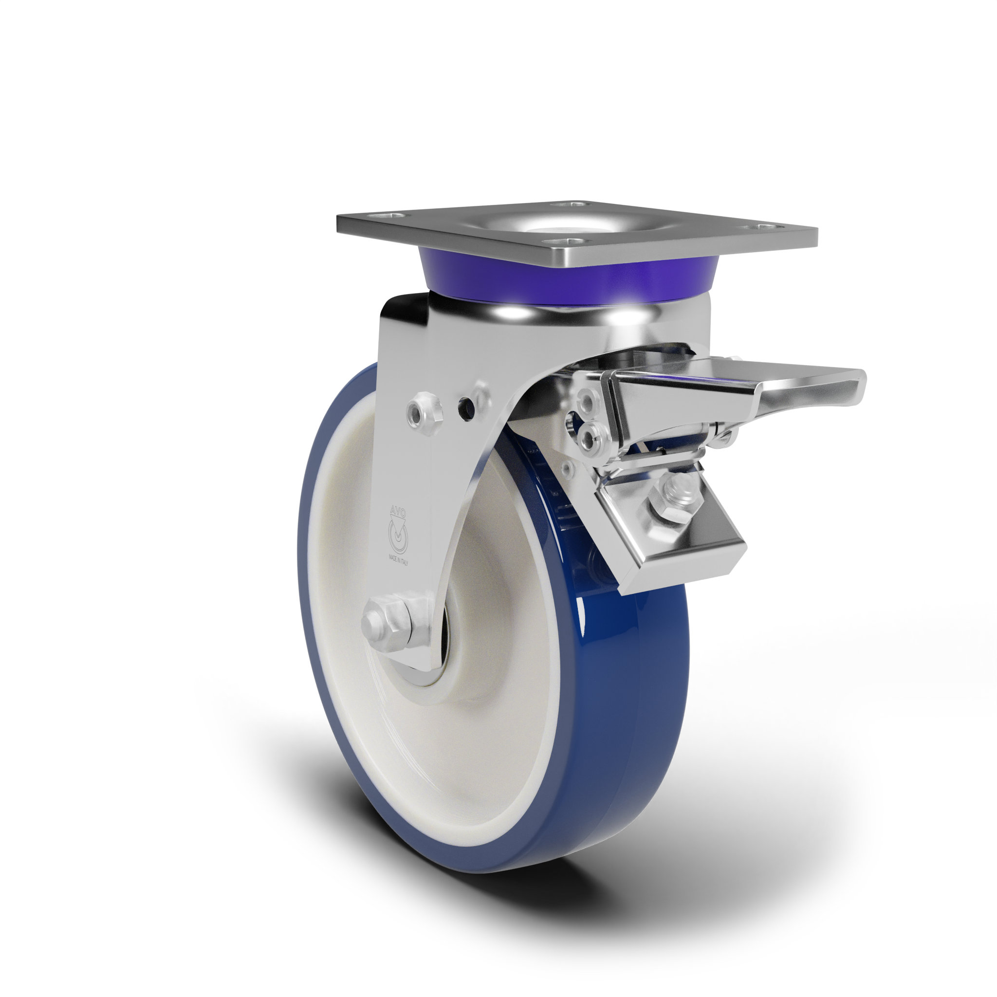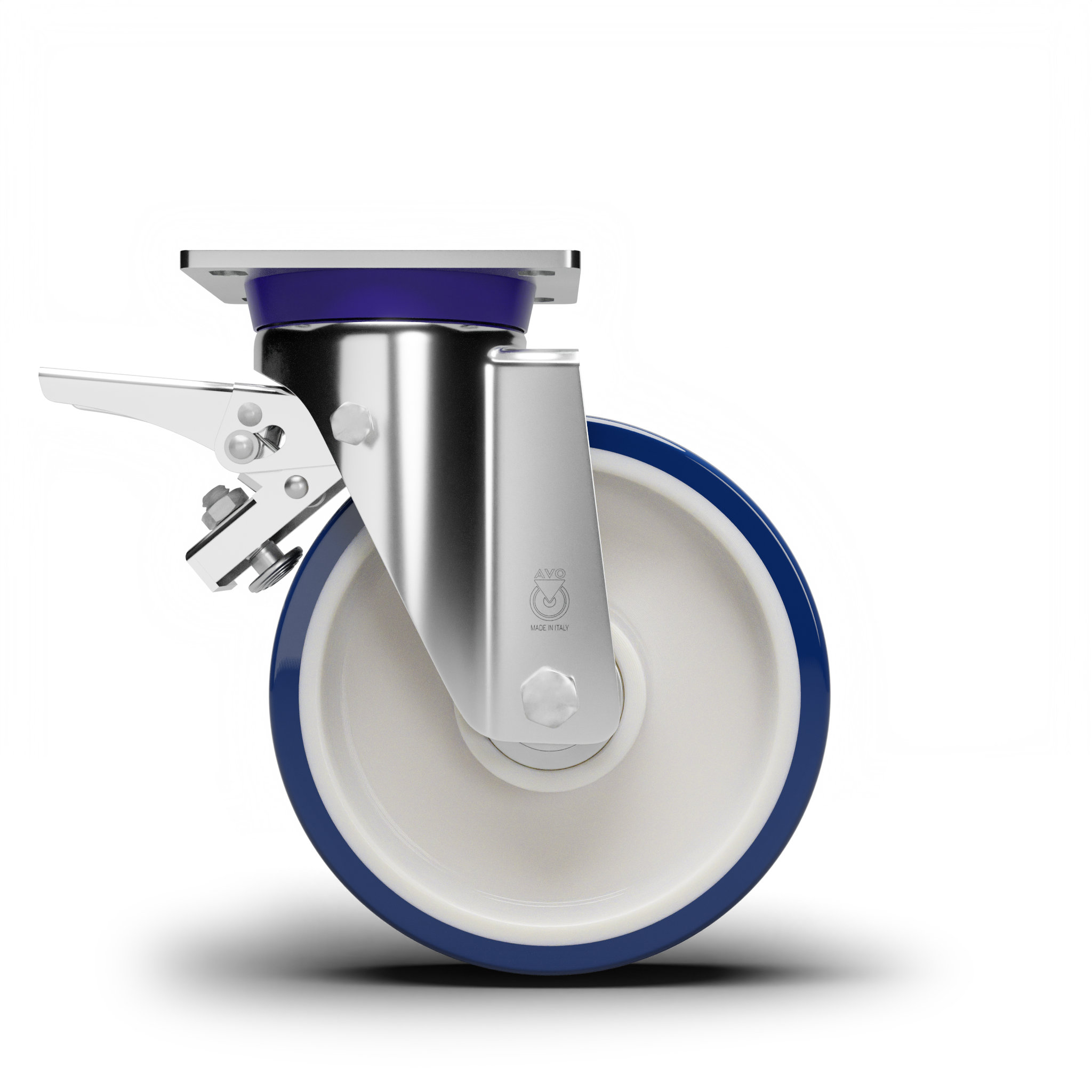 AVO – Ruota in poliuretano termoplastico con supporto in inox aisi 304 per industria, diametro 80mm ean 27435