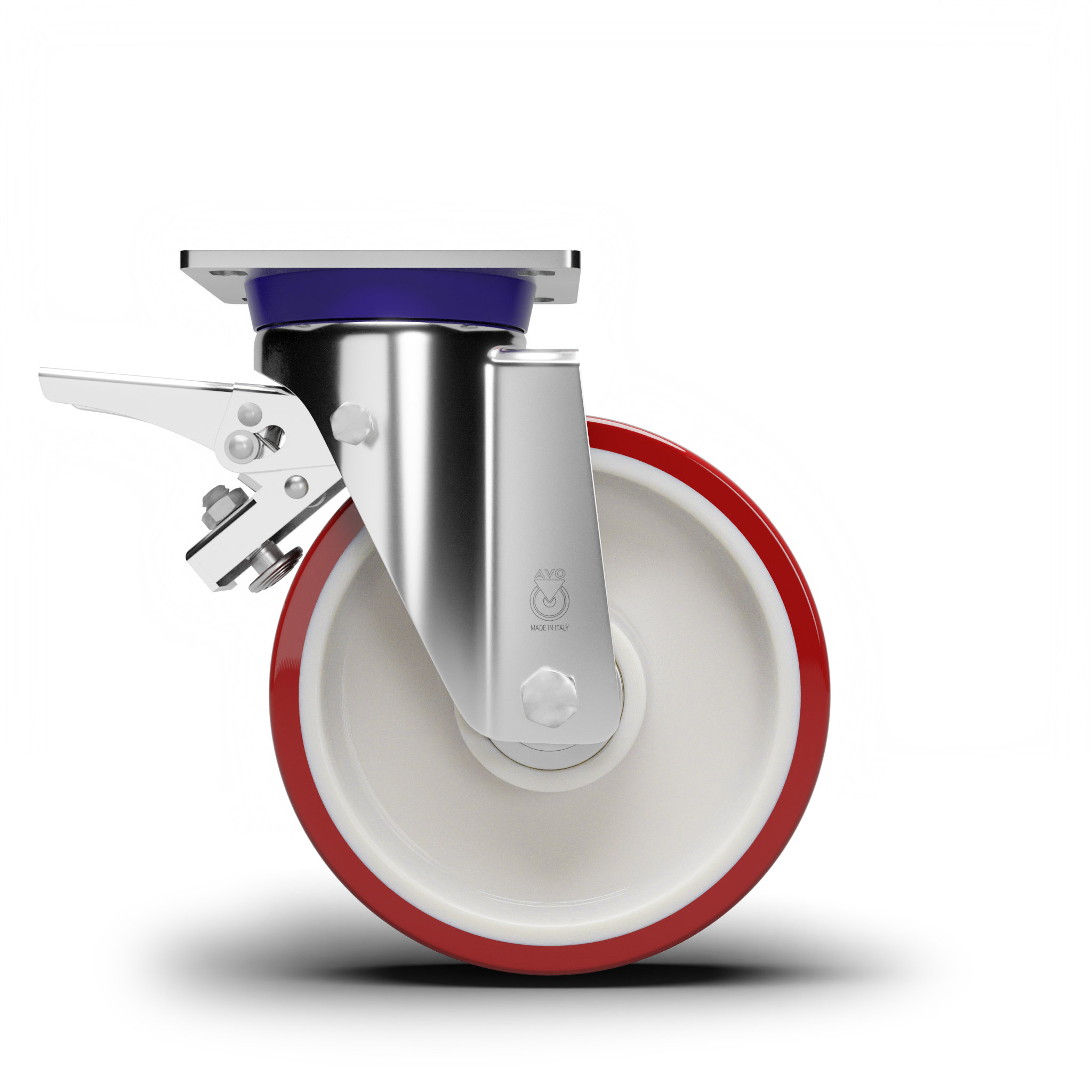 AVO – Ruota in poliuretano termoplastico con supporto in inox aisi 304 per industria, diametro 160mm ean 28733