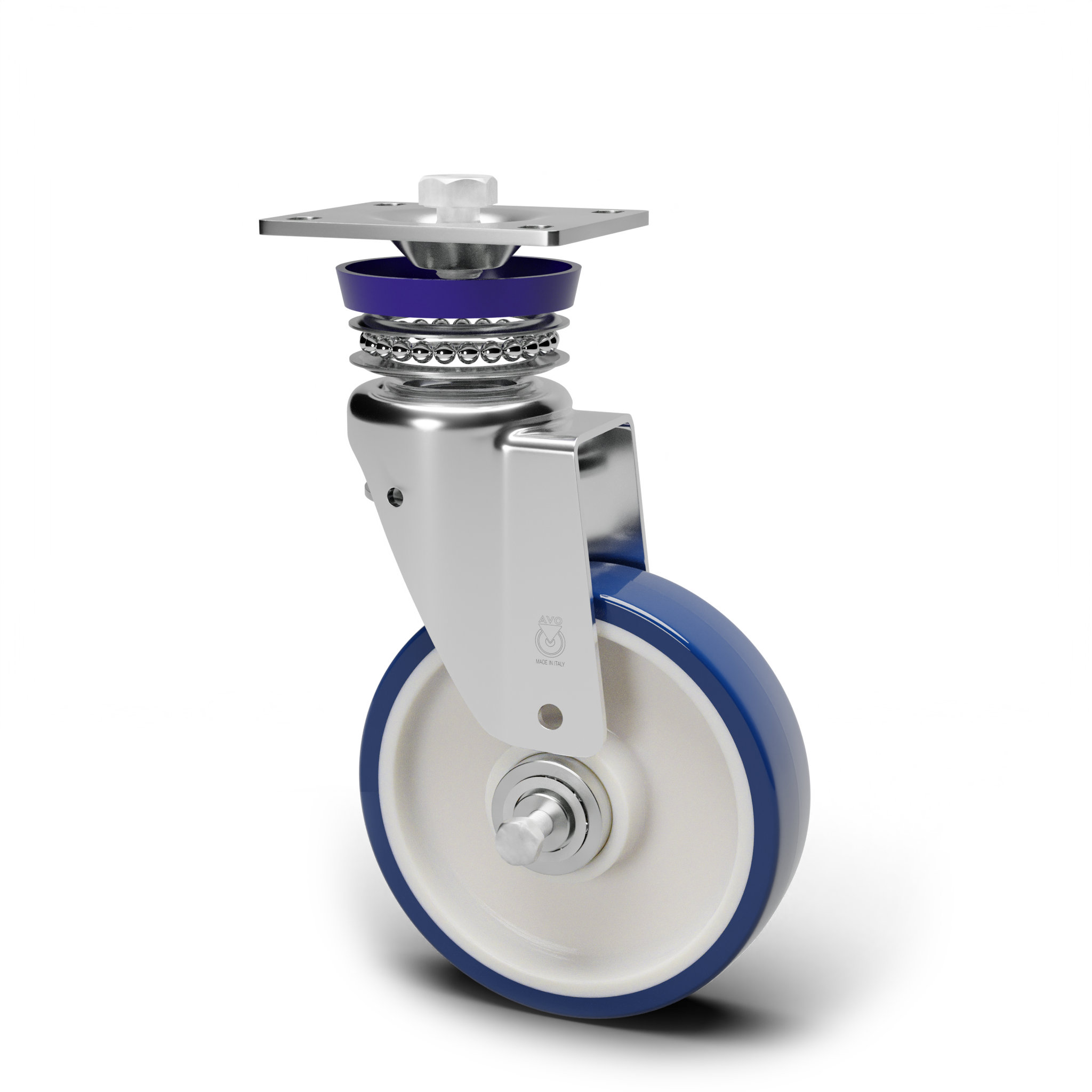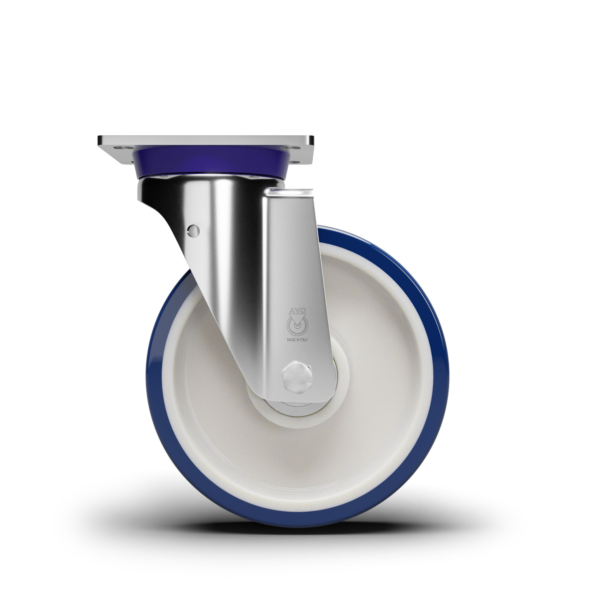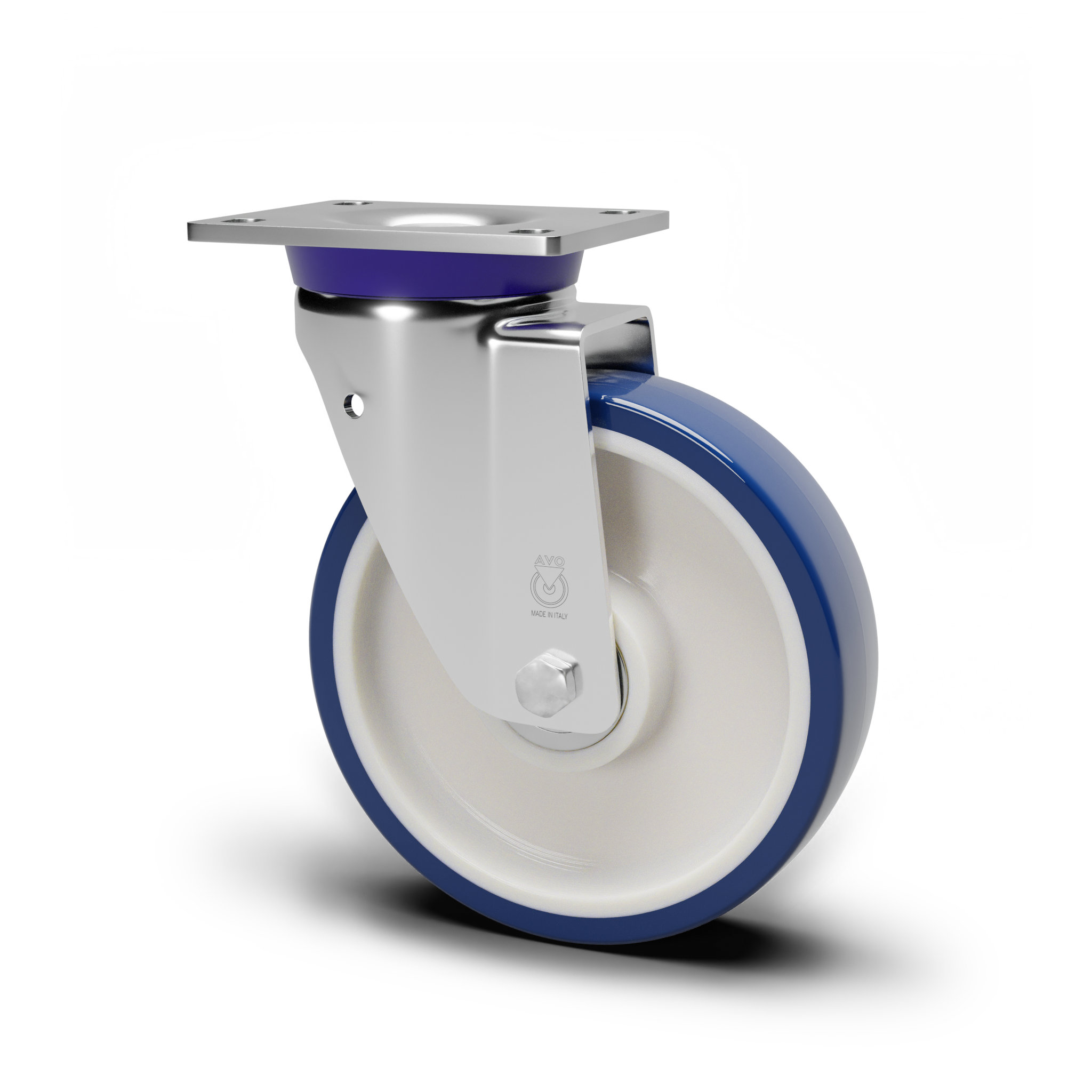 AVO – Ruota in poliuretano termoplastico con supporto in inox aisi 304 per industria, diametro 125mm ean 28206