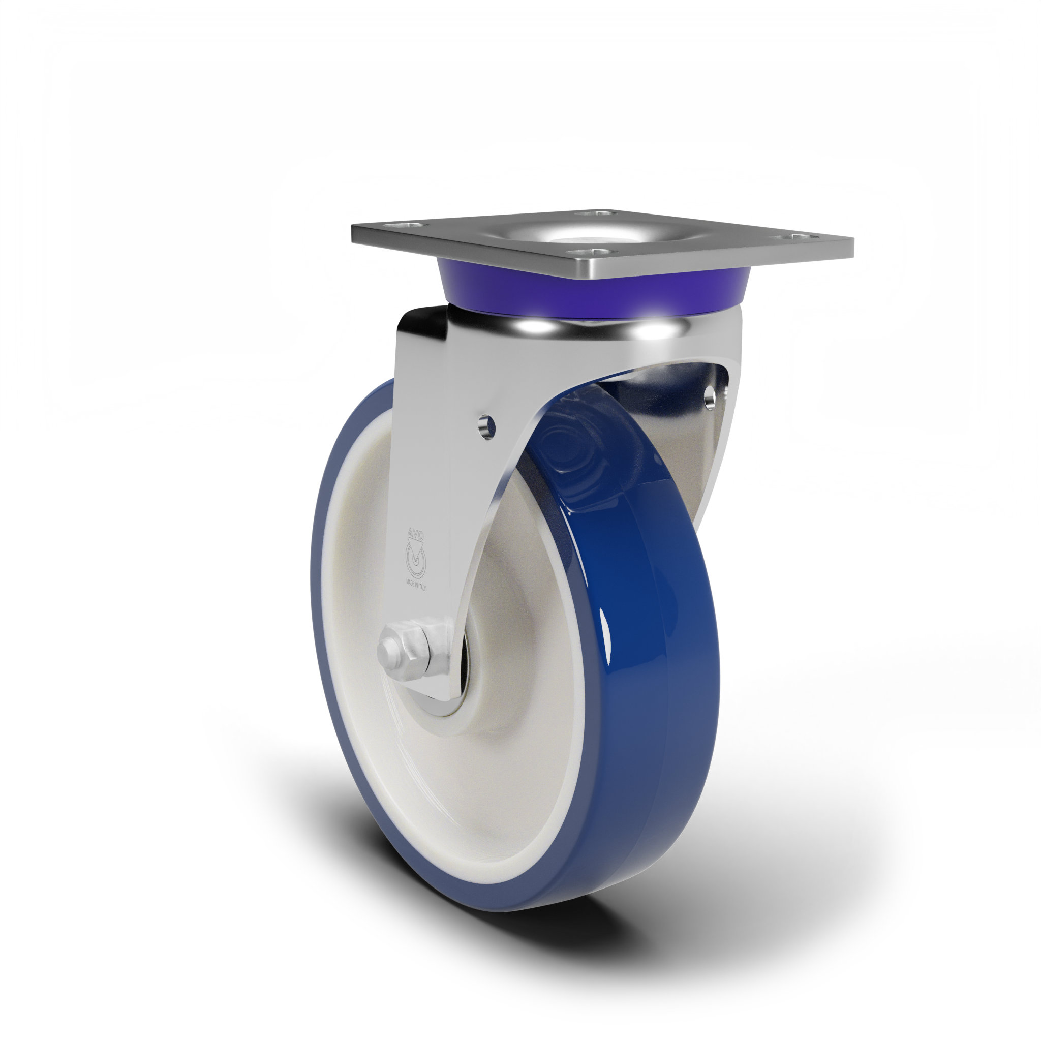 AVO – Ruota in poliuretano termoplastico con supporto in inox aisi 304 per industria, diametro 200mm ean 28710
