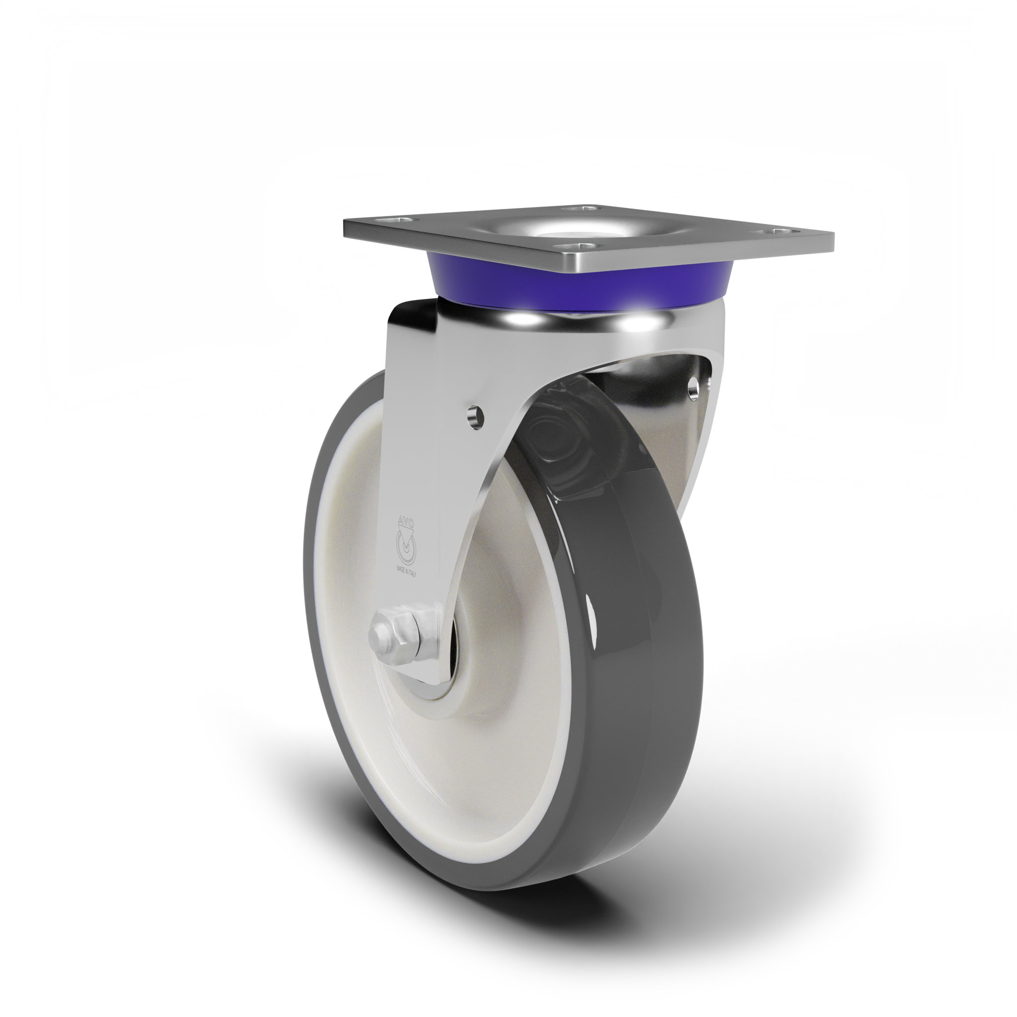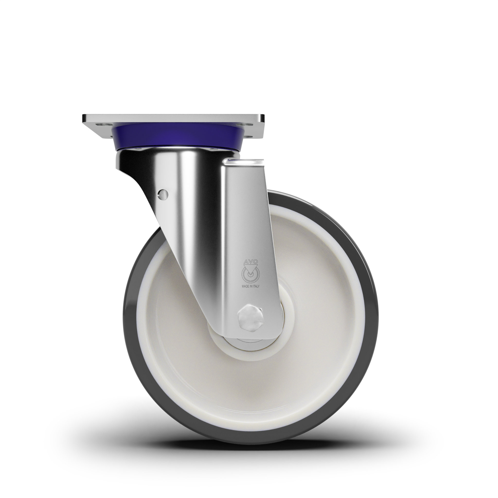 AVO – Ruota in poliuretano termoplastico con supporto in acciaio inox aisi 304 per industria, diametro 200mm ean 28753